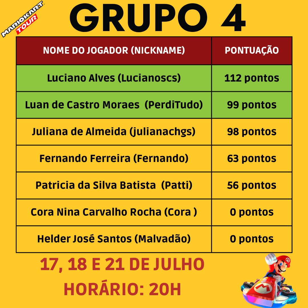 Caso você tenha sido vencido o confronto, fique atento aos próximos jogos, a Organizadora divulgará tudo nos grupos de WhatsApp.