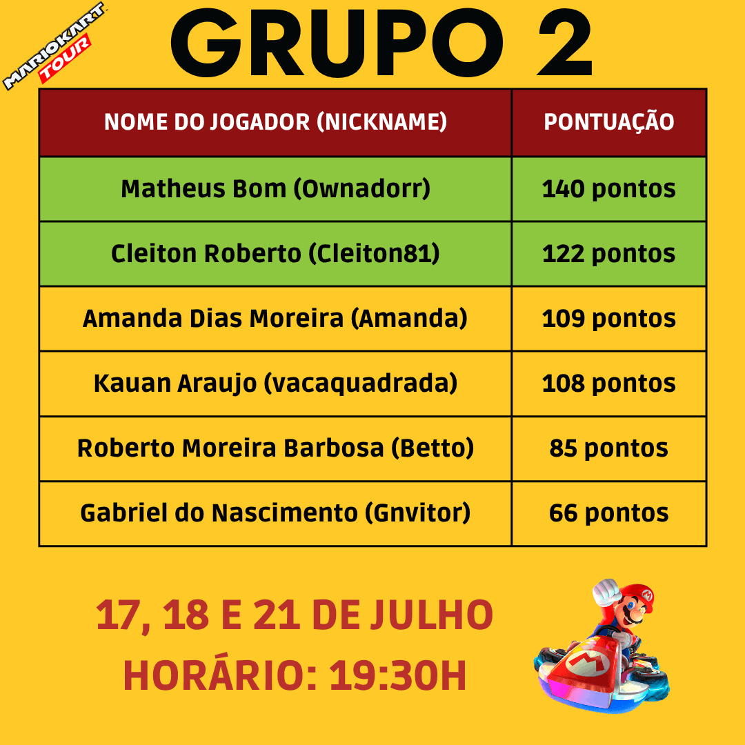 A Organizadora criará os grupos no WhatsApp para uma comunicação direta com os participantes. Fique atento aos horários e datas e não saia do grupo de Whatsapp oficial do torneio.