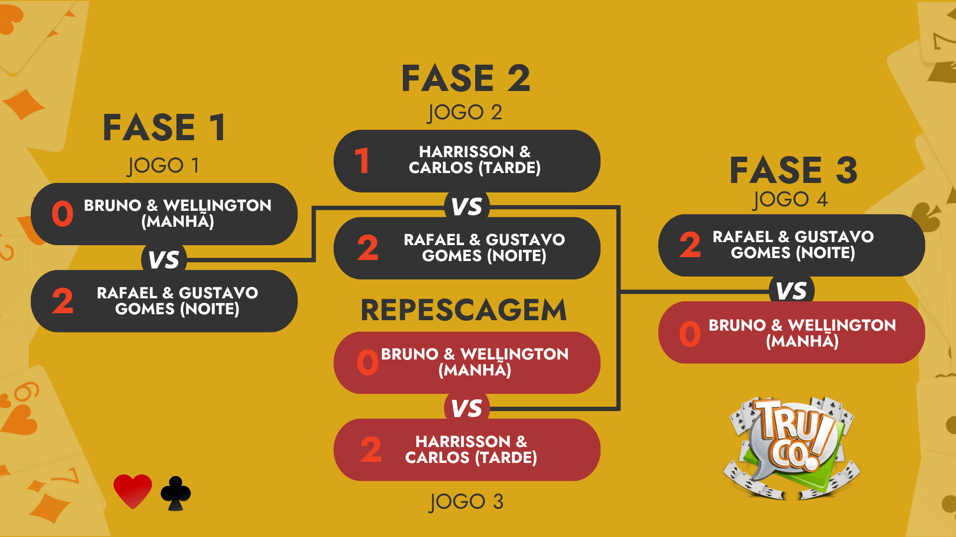 Caso você tenha sido vencido o confronto, fique atento aos próximos jogos, a Organizadora divulgará tudo nos grupos de WhatsApp.