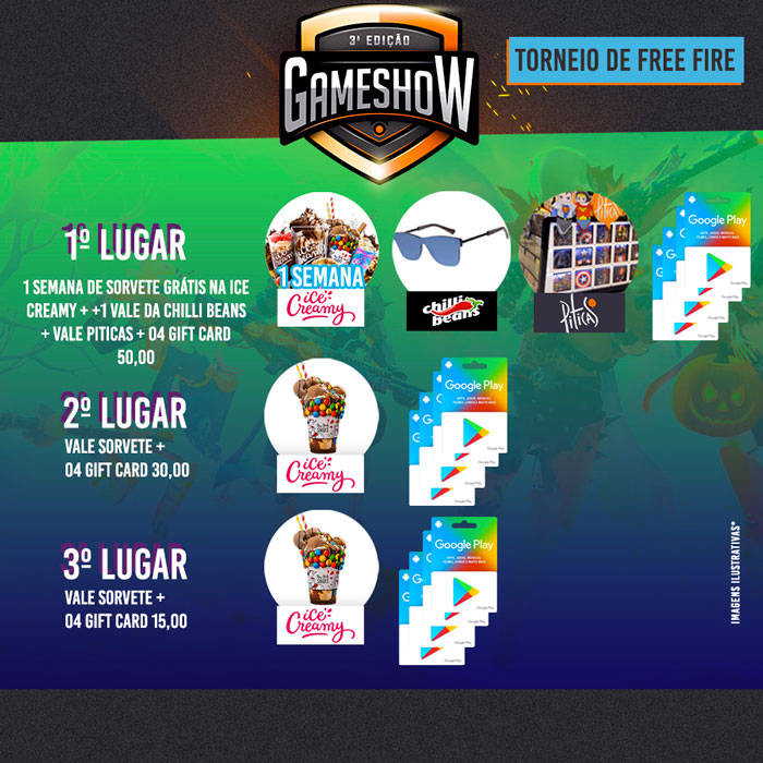 🎁 Premiação: Gift cards, vale Ice Creamy, vale piticas e óculos da Chilli Beans