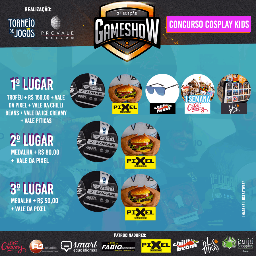 🎁 Premiação: Prêmios da Chilli Beans, vale Pixel Burguer, vale Ice Creamy, vale piticas e óculos da Chilli Beans